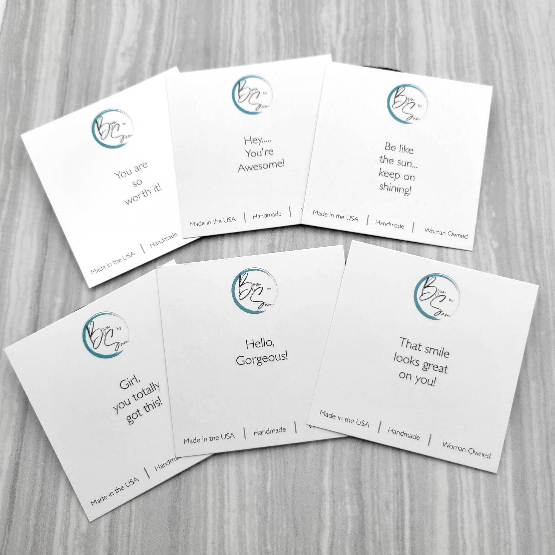 • DISPLAY/PACKAGING: All earrings are on our custom Affirmation Cards. They all have small sayings to lift the spirit, such as “Hello Gorgeous”, “Hey, You’re Awesome!” and more. Great for gifting! See photo.