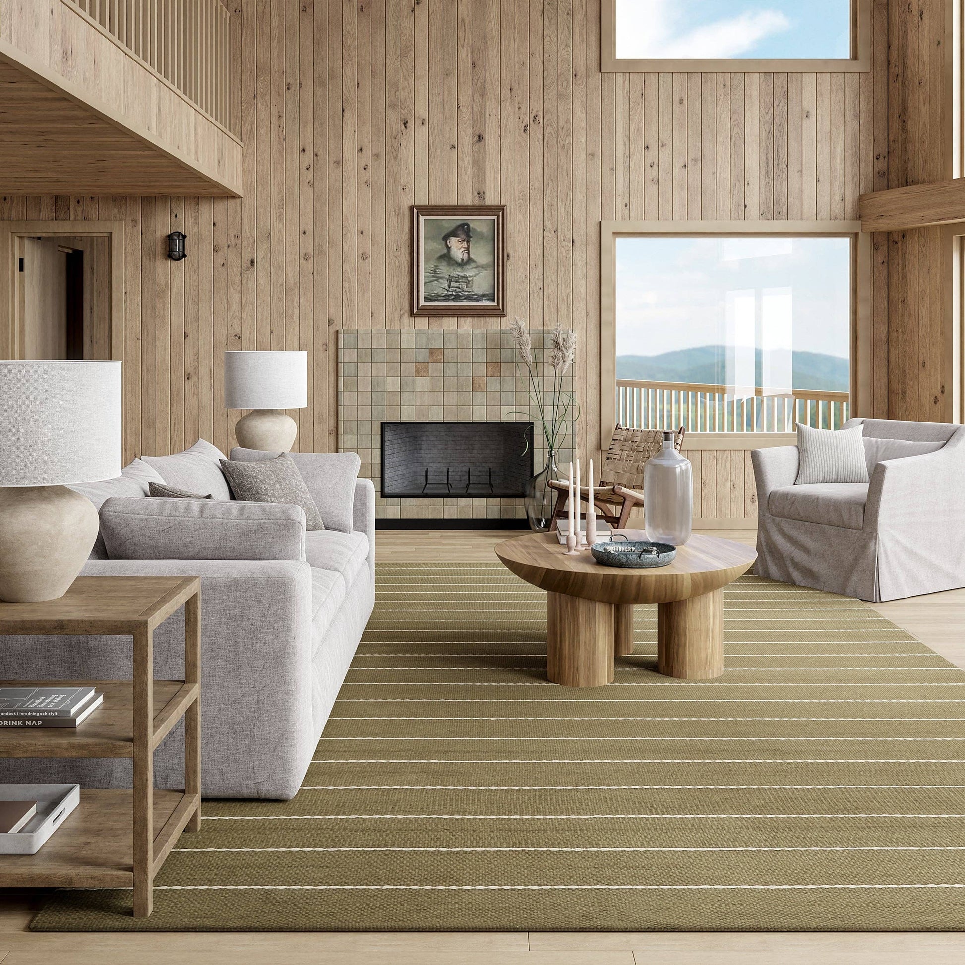 Olive Striped Wool Area Rug 4' x 6'