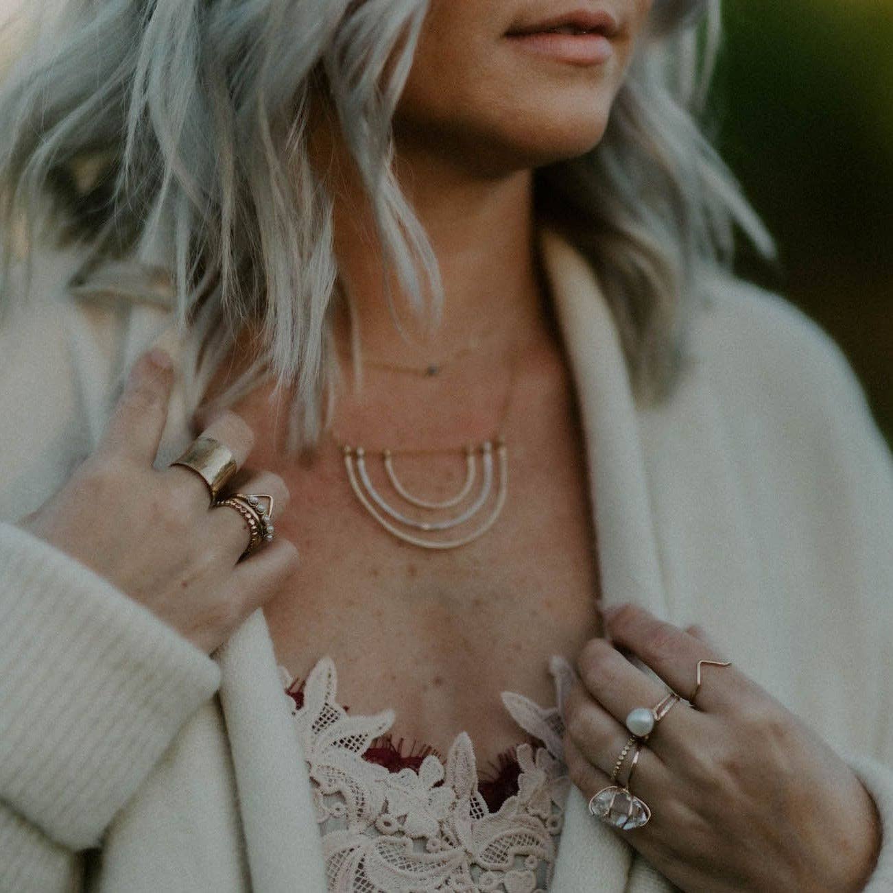 Get The Look: We love the Reflection Rainbow necklace paired with the Herkimer diamond necklace.