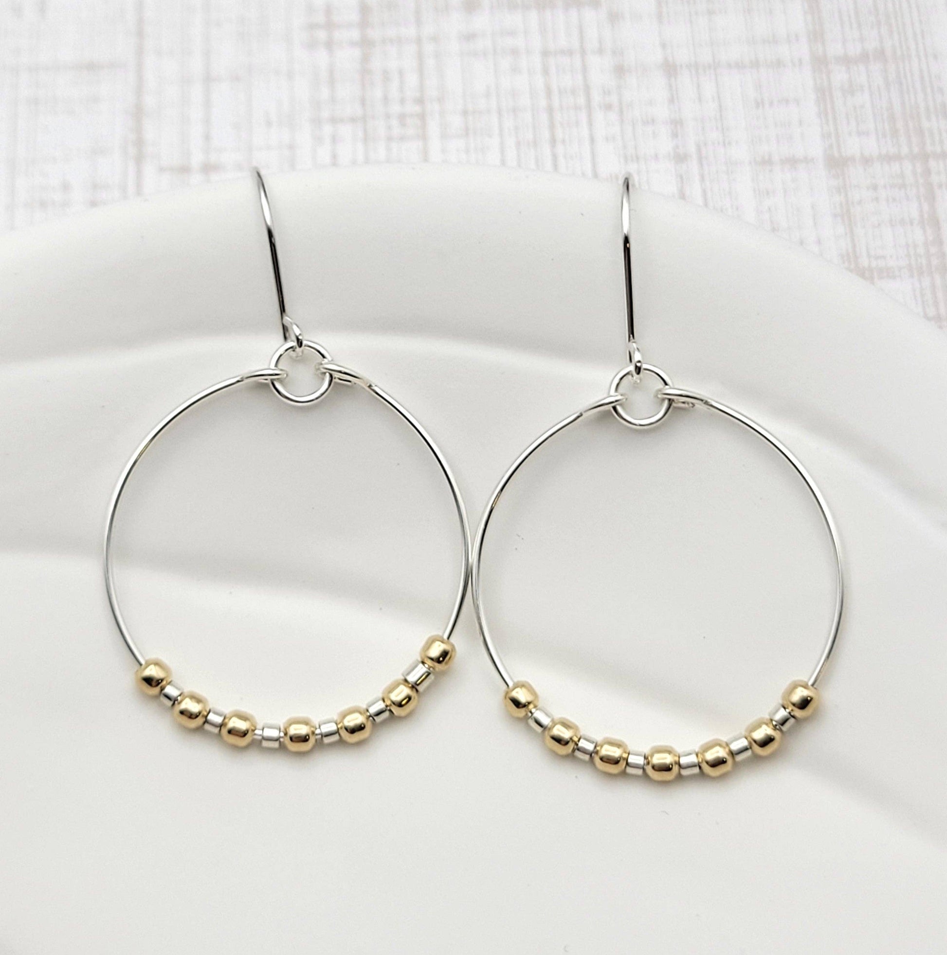 Silver Hoop & Gold Beaded Earrings