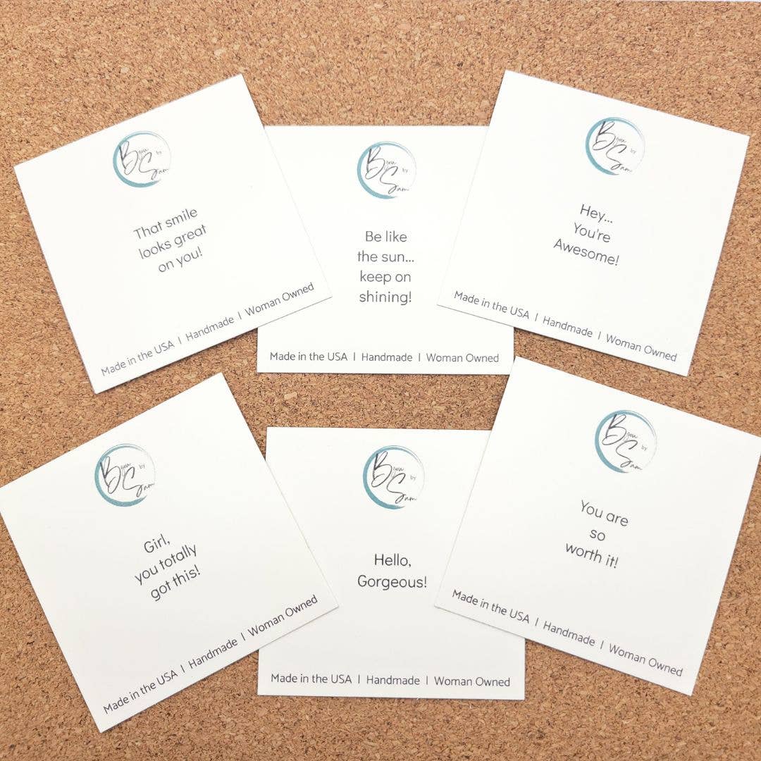 • DISPLAY/PACKAGING: All earrings are on our custom Affirmation Cards. They all have small sayings to lift the spirit, such as “Hello Gorgeous”, “Hey, You’re Awesome!” and more. Great for gifting! Earrings card measure 2.5" x 2.5". See photo.