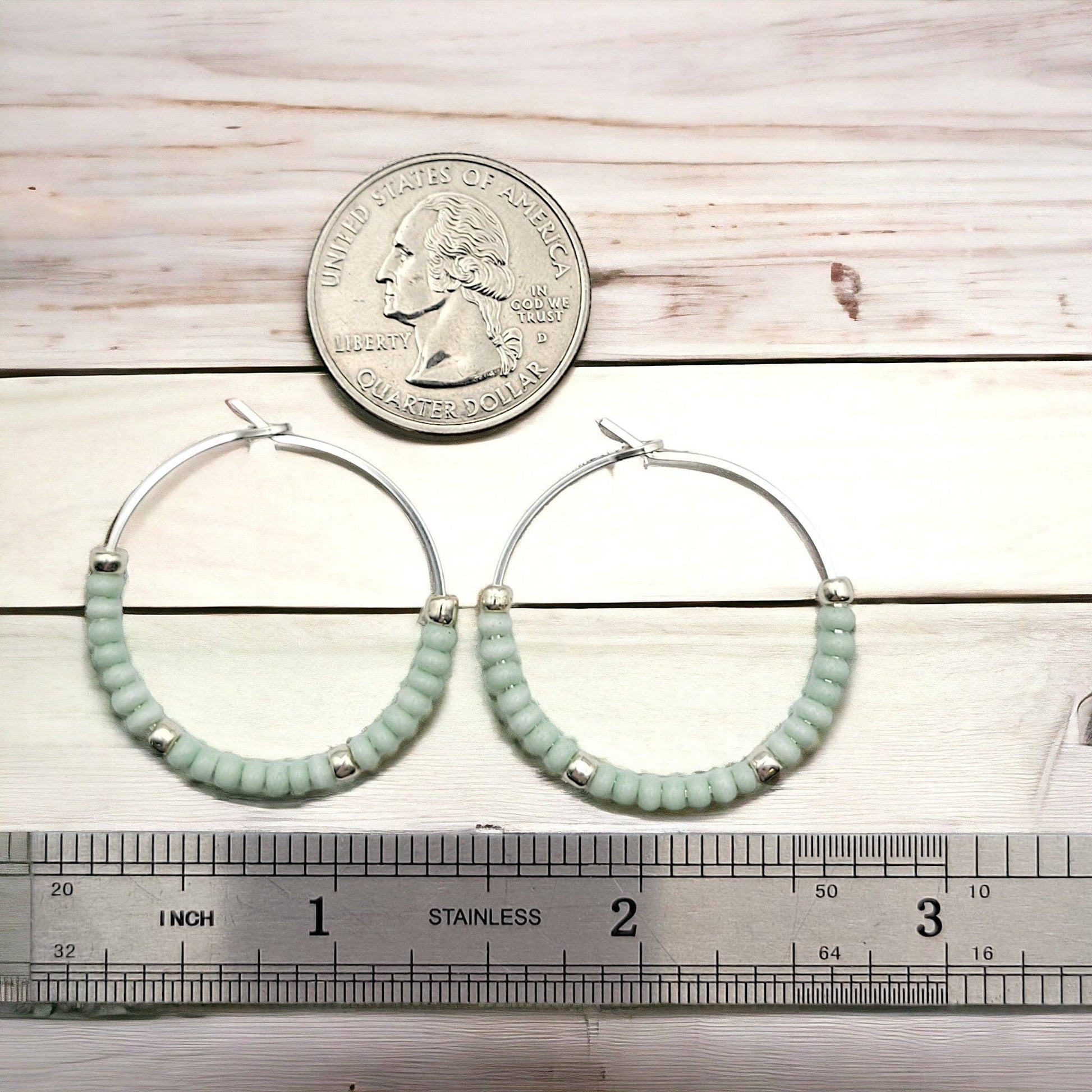 Sterling Silver & Mint Bead Hoop Earrings