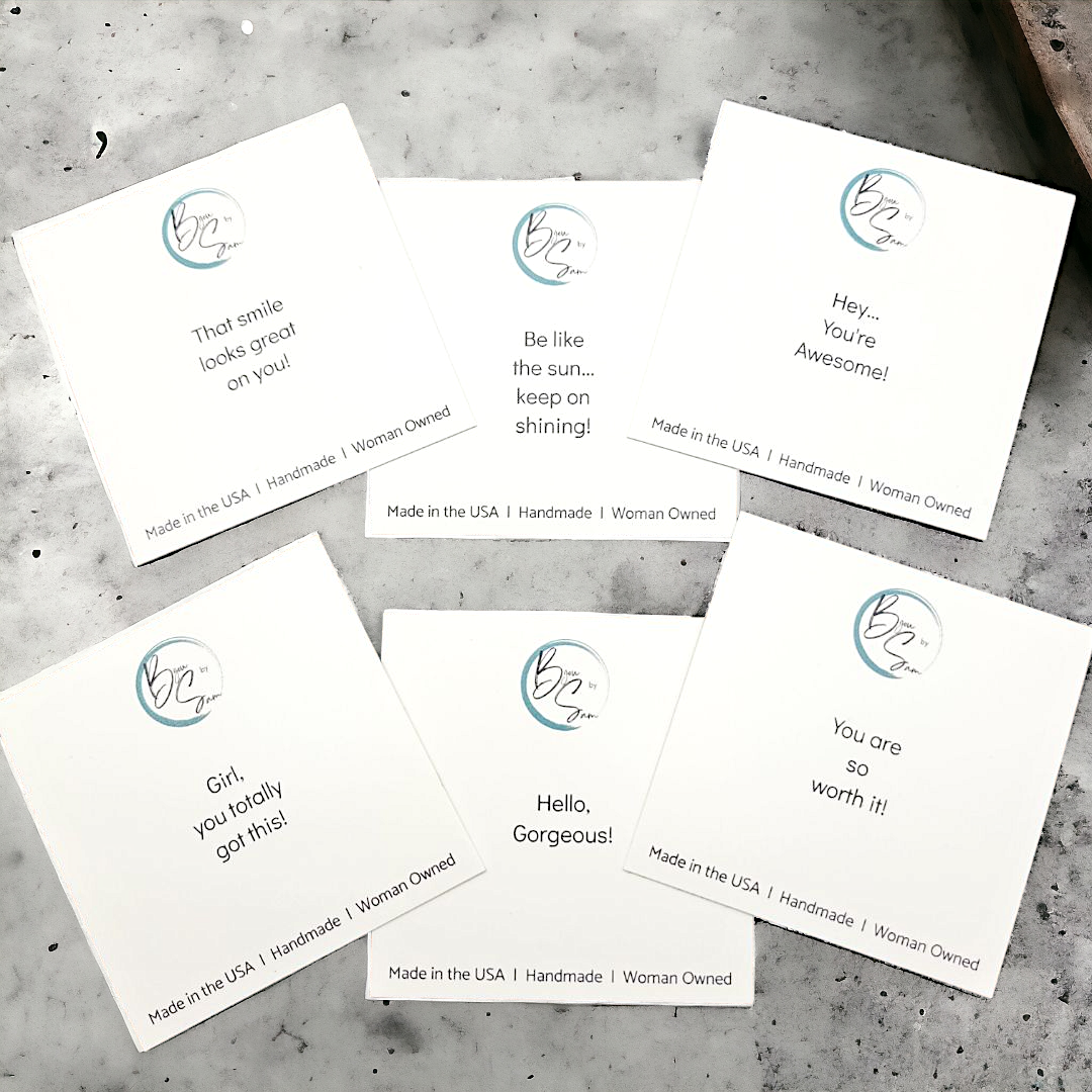 • DISPLAY/PACKAGING: All earrings are on our custom 2.5" square Affirmation Cards. They all have small sayings to lift the spirit, such as “Hello Gorgeous”, “Hey, You’re Awesome!” and more. Great for gifting! See photo. **NOTE: Earring cards available WITHOUT affirmations upon request - please message when ordering.